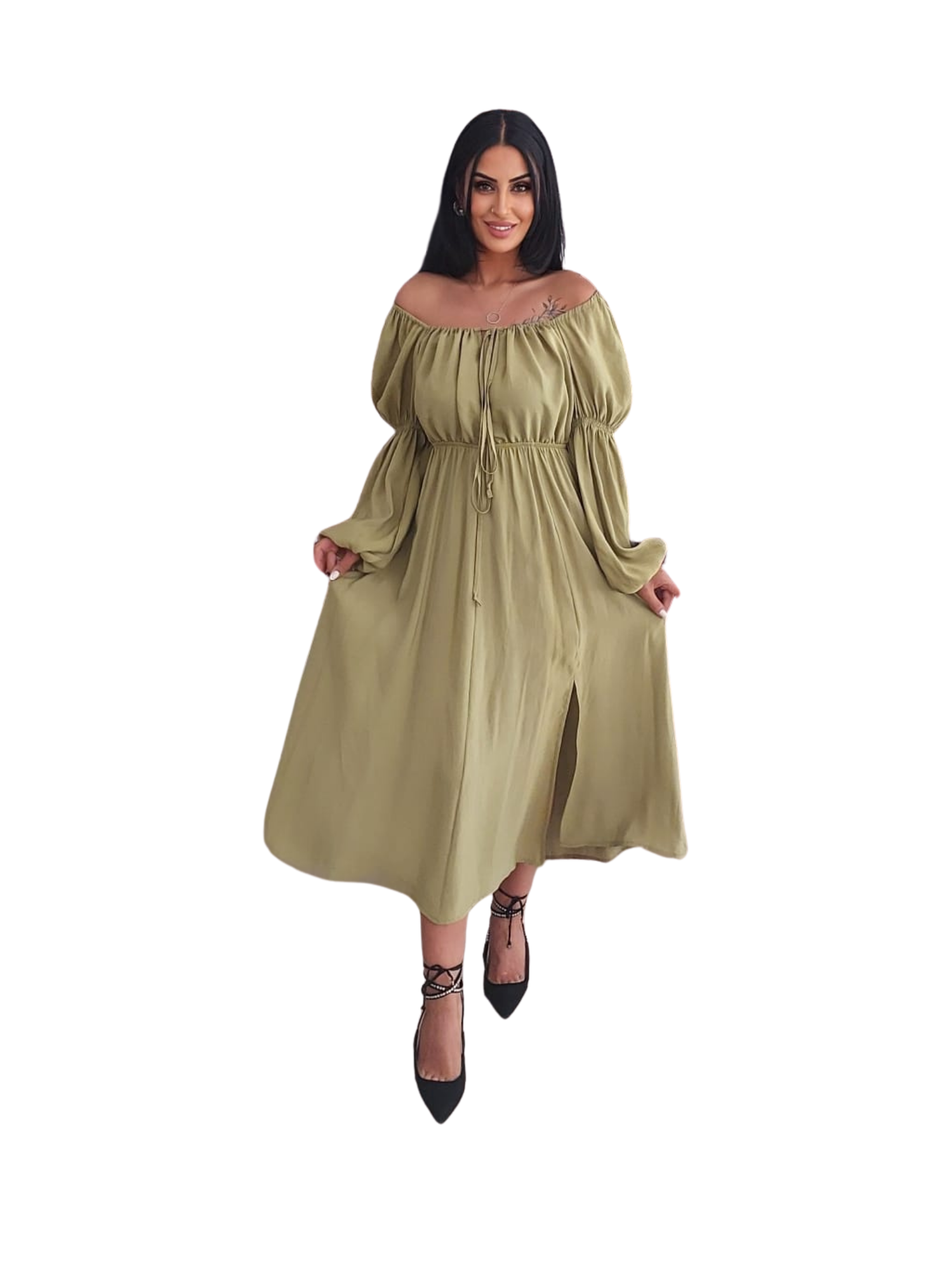 BÜZGÜLÜ YEŞİL ELBİSE