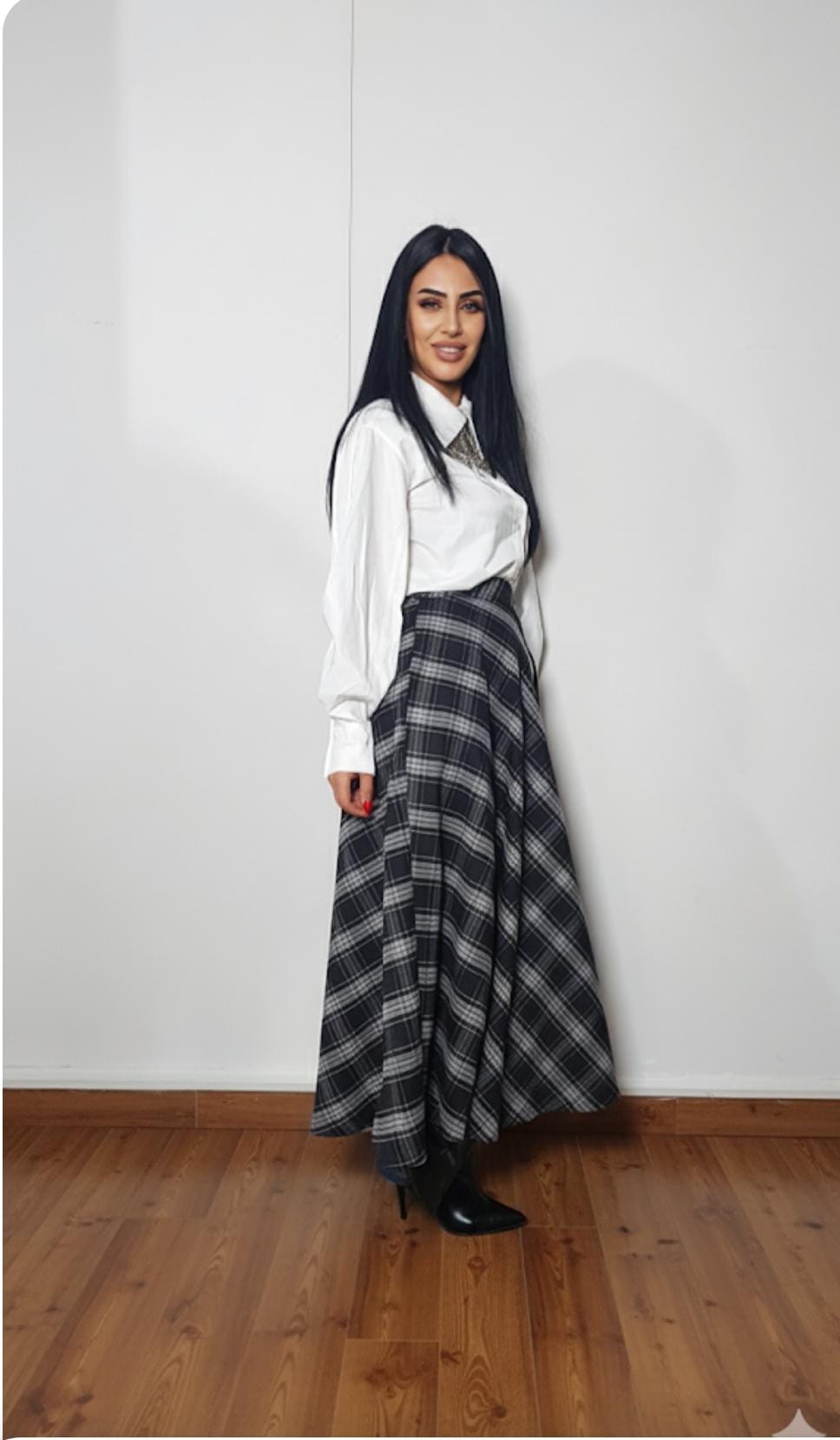Yüksek bel ekose uzun etek ile zamansız şıklık ve konfor bir arada.Eteğimizin boyu 95 cm dir.