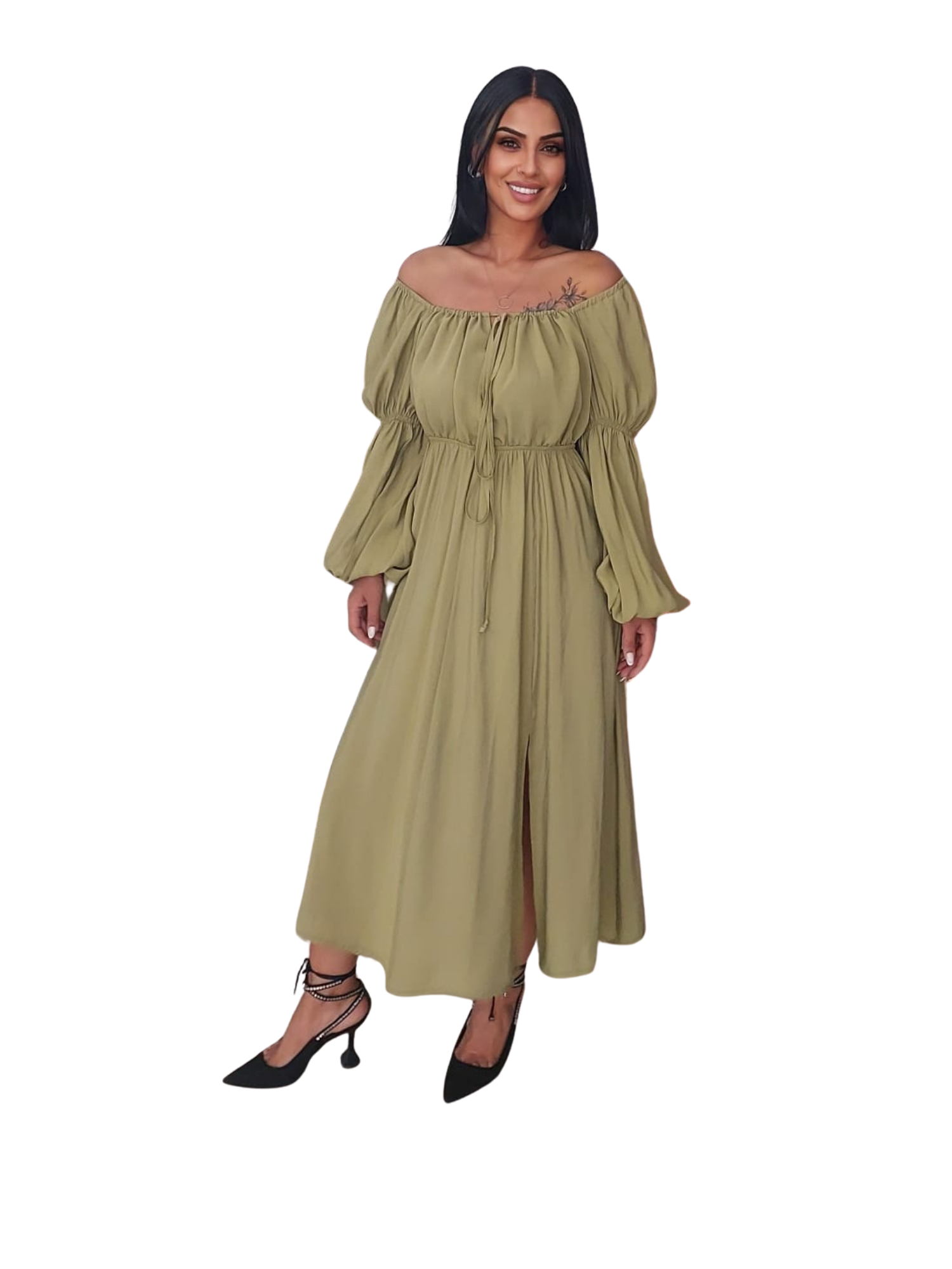 BÜZGÜLÜ YEŞİL ELBİSE